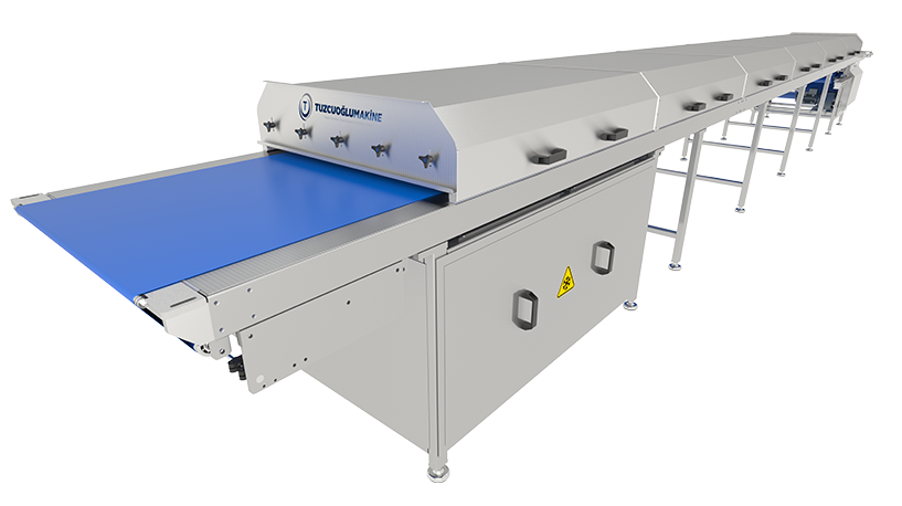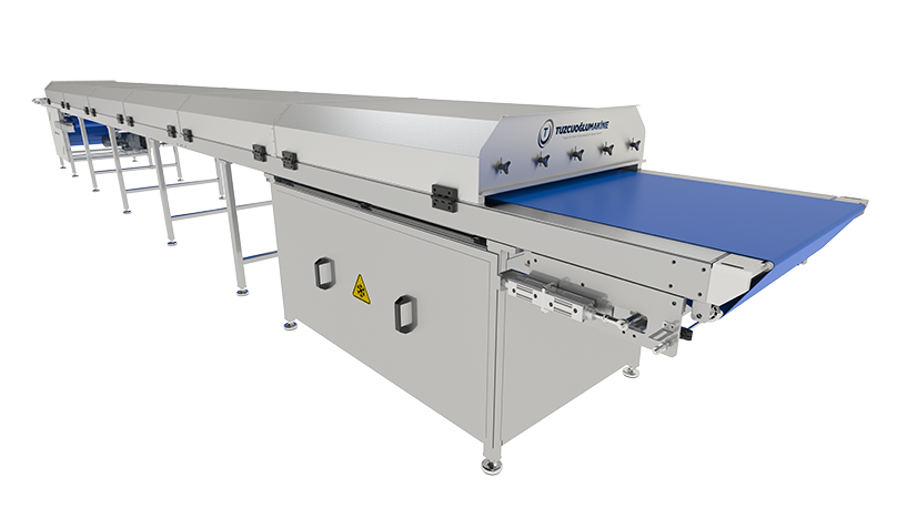 It is a machine designed to perform the cooling process of the products coming out of the chocolate coating machine.